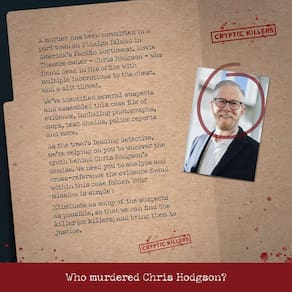Um assassinato foi cometido em uma pequena cidade portuária na Ilha Fidalgo, no noroeste do Pacífico dos Estados Unidos. O dono do cinema - Chris Hodgson - foi encontrado morto em seu escritório com várias lacerações no peito. As evidências foram coletadas para você, é seu trabalho juntar as peças e descobrir quem matou Chris Hodgson.