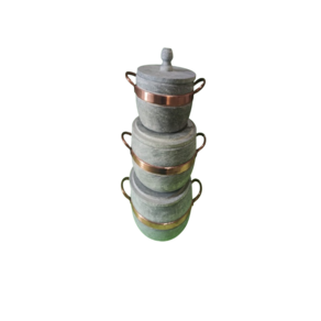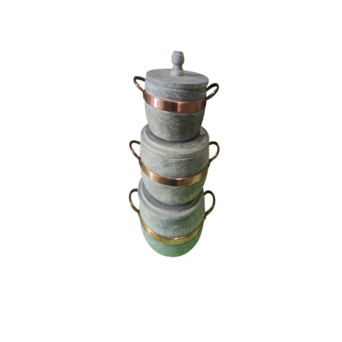 Jogo com 3 Panelas de Pedra Sabão - Autenticidade e Qualidade! Leve o charme e o sabor da culinária mineira para o seu dia a dia com nosso jogo de panelas de pedra sabão. Perfeitas para preparar refeições deliciosas e saudáveis, nossas panelas são feitas artesanalmente para garantir durabilidade e um cozimento uniforme.
