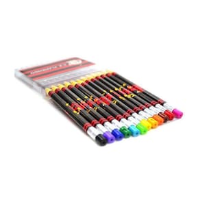 Jogo com 12 lapiseiras de cor - jogo com 12 lapiseiras de cor - olha só que jogão jogo contendo 12 lapiseiras de cor 2 mm, todos customizados do mengão. Presenteie o filhinho a com este incrível jogo, ele vai amar desenhar com as cores do time. O topo da lapiseira é ainda um apontador que pode ser utilizado para apontar as pontas, assim, as lapiseiras estarão sempre prontas para desenhar. Detalhes: material: plástico; peso 0,80 gramas; altura 14,50cm.