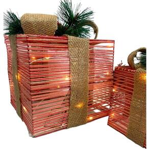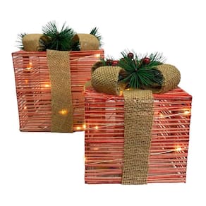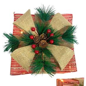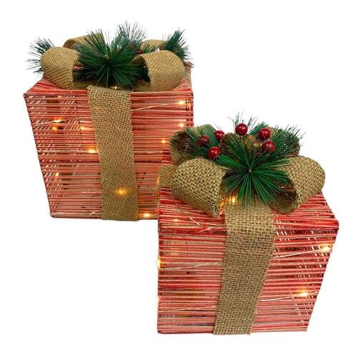 Jogo com 2 caixas de presente enfeite natalino com luz