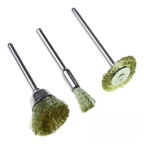 Benefícios: Escovas de latão que não riscam metais delicados. Não produzem faíscas durante o uso. Kit com 3 formatos diferentes para maior versatilidade. Compatível com micro-retíficas de todas as marcas. Ideal para limpeza, polimento e restauração de peças.