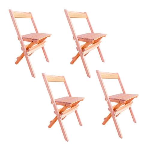 Jogo com 4 Cadeiras DobrÃveis em Madeira MaciÃa - Cru