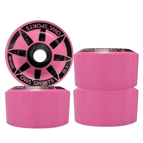 Jogo Com 4 Rodas Para Patins Quad Owl Sports 60 mm 80A Cor: Rosa Dureza: 80A A roda Quad Owl Star 60mm são rodas de poliuretano PU em 60 x 32mm com dois tipos de dureza 95A e 80A. Essas rodas são indicadas para patins quad e também mini cruiser. Tamanho: 60 x 32 mm Dureza: 95A Recomendação: Indicadas para terrenos planos e lisos, pistas e quadras. quantidade: jogo de 4 rodas Tamanho: 60 x 32 mm Dureza: 80A Recomendação: Por serem mais macias, obtém um ótimo desempenho em asfalto. quantidade: jogo de 4 rodas