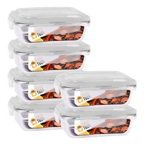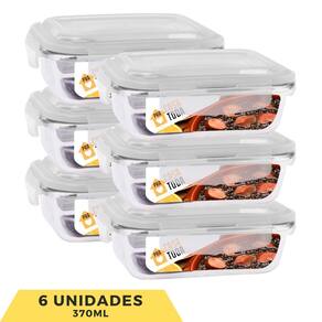 Jogo Com 6 Potes Vidro Tampa Silicone Hermetica 370ml Marmitas
