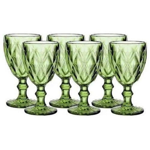 Jogo com 6 Taças Decoradas 300ml Cor: Verde Diamond Nome do Produto: Jogo com 6 Taças Decoradas 300ml