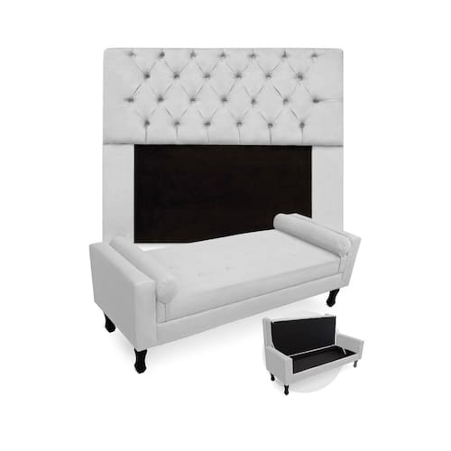 Jogo Com Cabeceira Mirage + Recamier Baú Fenix Solteiro 90 cm Suede Branco - LM DECOR
