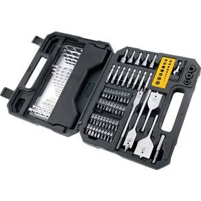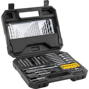 1 Jogo de bits, ponteiras e brocas, composto por uma maleta plástica com 82 peças, sendo: 1 adaptador magnético 60,0 mm, 2 bits fenda comprimento 50,0 mm (5,0 mm e 6,0 mm), 3 bits phillips comprimento 50,0 mm (PH1, PH2, PH3), 3 bits pozidrive 50,0 mm (PZ1, PZ2, PZ3), 8 bits phillips comprimento 25,0 mm (2 - PH0, 2 - PH1, 2 - PH2 e 2 - PH3), 8 bits fenda comprimento 25,0 mm (2 de 3,0 mm, 2 de 4,0 mm, 2 de 5,0 mm e 2 de 6,0 mm), 8 bits pozidrive comprimento 25,0 mm (2 - PZ0, 2 - PZ1, 2 - PZ2 e 2 - PZ3), 6 bits hexalobular comprimento 25,0 mm (T10, T15, T20, T25, T27 e T30), 6 bits allen comprimento 25,0 mm (2 de 2,5 mm, 1 de 3,0 mm, 1 de 4,0 mm, 1 de 5,0 mm e 1 de 6,0 mm), 5 soquetes sextavados (6,0 mm, 7,0 mm, 8,0 mm, 9,0 mm e 10,0 mm), 1 chave allen 2,5 mm, 3 limitadores de profundidade para broca de 5,0 mm, 6,0 mm e 8,0 mm, 1 escariador com 10,0 mm de diâmetro x 30,0 mm de comprimento, 1 gabarito para verificação da medida da broca de 1,5 mm a 6,5 mm, 4 brocas chata para madeira (13,0 mm, 16,0 mm, 19,0 mm e 22,0 mm), 5 brocas com 3 pontas para madeira (4,0 mm, 5,0 mm, 6,0 mm, 8,0 mm e 10,0 mm), 11 brocas de aço rápido (1,5 mm, 2,0 mm, 2,5 mm, 3,0 mm, 3,5 mm, 4,0 mm, 4,5 mm, 5,0 mm, 5,5 mm, 6,0 mm e 6,5 mm), 6 brocas de vídea para concreto (4,0 mm, 5,0 mm, 6,0 mm, 7,0 mm, 8,0 mm e 9,0 mm).