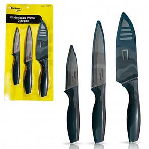 Kit de utensílios de corte contendo: - 1 faca santoku 5 Pol. - 1 faca multiuso 5 Pol. - 1 faca para frutas 3,5 Pol.