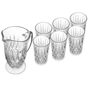 Jogo De Copos E Jarra De Vidro Transparente Diamante 7 Peças - Lyor 220106 Conjunto de 6 Copos e Jarra De Vidro Diamond - Lyor