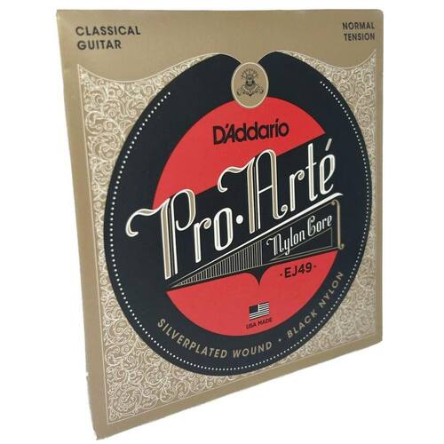 - Modelo EJ 49 - Tensão normal - Contém 6 cordas de nylon preto - Banhadas em prata Marca: Daddario Ej49 Pro Arté Ean: 7806126232294