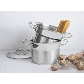 O Jogo Cozi-Pasta Tramontina em Aço Inox Fundo Triplo com Tampa Plana Detalhe Satinado 2 Peças 24 cm de diâmetro garante eficiência total na hora de cozinhar! O seu fundo triplo (aço inox + alumínio + aço inox) distribui o calor uniformemente, proporcionando um cozimento mais rápido, economizando energia e deixando os alimentos aquecidos por mais tempo. Conta também com alças longas em aço inox que conferem um manuseio profissional. Além disso, seu caldeirão pode ser utilizado para outros cozimentos. Pode ser utilizado em diversos tipos de fogão e lavado diariamente em máquina de lavar louça sem perder o brilho. A sua cozinha ganha vida e praticidade com esse incrível item.