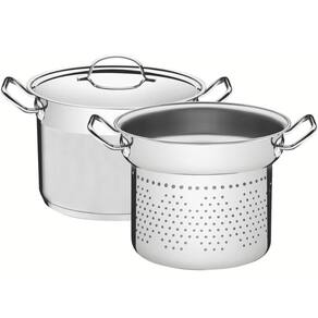 Jogo Cozi-Pasta Tramontina Professional em Aço Inox Fundo Triplo 2pçs Caldeirão Escorredor.