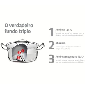 - O fundo triplo distribui uniformemente o calor, não sendo necessário o fogo alto. E, além disso, você economiza energia;