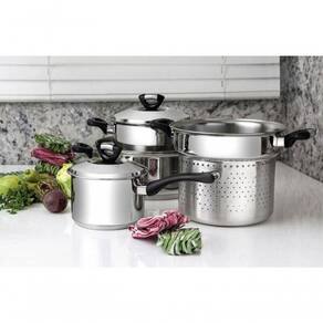 - Totalmente feita em aço inox, não solta nenhum resíduo nos alimentos, mantendo-os saudáveis. Seu desenho limpo e sem cantos torna a limpeza muito mais fácil.- Fundo triplo (aço inox + alumínio + aço inox) distribui o calor uniformemente, proporcionando um cozimento mais rápido e uniforme, economizando energia e deixando os alimentos aquecidos por mais tempo.- Cabos, alças e pegadores em baquelite, não aquecem.- Cabos e alças com protetor de chamas, evitando que queimem quando a chama não estiver centralizada no fundo da panela.- Possui tampa com saída de vapor, e encaixe perfeito.- com Acabamento em alto brilho.- Pode ser lavada diariamente Na máquina de lavar louça.- As panelas podem ser utilizadas nos seguintes fogões: por indução, gás, elétrico e vitro-cerâmico.
