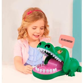 Atenção: imagens meramente ilustrativas.Contém:01 un - croco doido.Esse é o brinquedinho que toda criança vai amarrrrCom ele a diversão garantida para seus pequenos brincar, junte toda a criançada e vamos ver quem o crocodilo vai morderAperte os dentes, mas não seja mordido pelo crocodilo- para até 2 jogadores.- com luz.- com som.- aperte o dente certo e não seja mordido.- utiliza 2 pilhas aa 1.5v não inclusas Dimensões do crocodilo:Altura: 10 cm.Largura: 10 cm.Comprimento: 25 cm.Atenção:- brinquedo indicado para crianças acima de 18 meses.Segurança:Registro: 005720/2019Inmetro