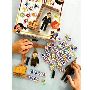 O tradicional jogo da forca está presente na infância de muitas gerações. é perfeito para dois jogadores. Cada um,com suas peças de madeira, monta uma palavra sobre um tema pré estabelecido. À medida que alguém erra, uma parte do corpo vai sendo destinada para formar a forca. Ganha quem conseguir descobrir primeiro a palavra do oponente e assim escapar do enforcamento. Funciona como um exercício cerebral, mas também auxilia na alfabetização, criatividade e no desenvolvimento da competição saudável.