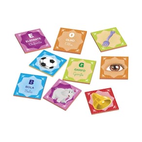 Contém 40 peças em MDF de 5x5cm com imagens e as palavras para relacionar.