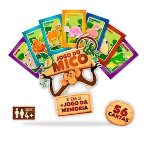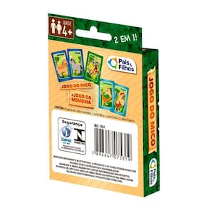 Atenção: imagens meramente ilustrativas.Contém:01 un - jogo da memória do mico 2 em 1.Chegou a hora de testar e aprimorar as habilidades da criançadaCom um super jogo que você vai aprender e se divertir ao mesmo tempo.Com ele a criança pode brincar tanto sozinho quanto sua família e amigos, agora a brincadeira vai ficar ainda mais divertida.Misture todos os cartões o máximo possível e comece a brincadeiraGaranta já o seuCaracterísticas do produto:- confeccionado em material papel cartão.- com detalhes em incríveis.- com 56 cartas.Medidas aproximadas da caixa: 9 x 14 cm.Atenção: jogo indicado para crianças acima de 4 anos.Segurança do brinquedo:Registro: 003754/201901264-25.