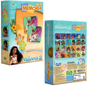 Descrição do produto : Prepare-se para uma nova aventura nos mares com Moana e seus amigos! O Jogo de Memória Moana 2 é perfeito para desenvolver a atenção, o raciocínio lógico e, claro, se divertir com os personagens dessa incrível continuação. Encontre os pares das cartas ilustradas com cenas e personagens do novo filme, como Moana, Maui, Heihei e muitos outros! : Detalhes técnicos : Marca: Toyster : Referência: 3263 : Idade recomendada: 4 : Material: Cartão : Ean: 7896054032639 : Peso (kg): 0,25 : Dimensões aproximadas da embalagem: 13 x 20 x 4 cm : Tamanho da peça 6,2 x 6,2 cm :