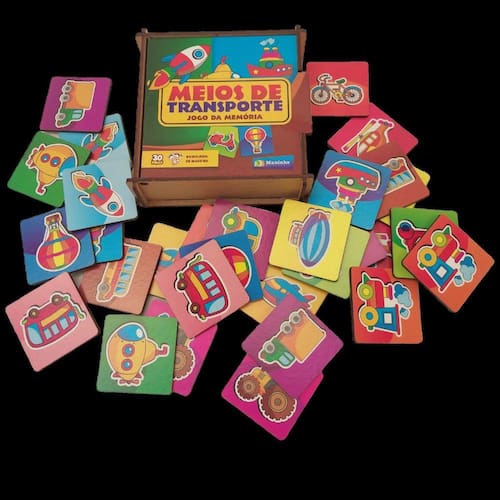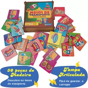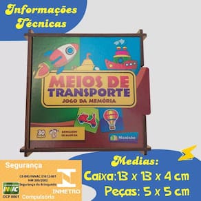 Jogo da memória meios de transporte 30 pç madeira cx c tampa Jogo da memória meios de transporte 30 pç madeira cx c tampa