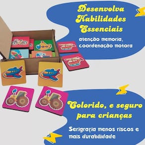 Acondicionado em uma linda caixa de madeira com tampa, esse jogo da memória vai proporcionar muita diversão e aprendizado para as crianças