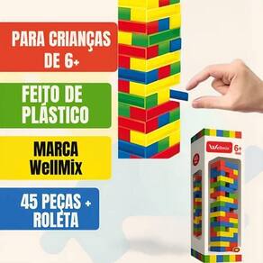 As 45 peças proporcionam uma torre de tamanho ideal para diferentes faixas etárias, sendo indicado tanto para crianças quanto para adultos.