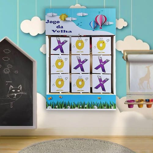 Desperte a diversão clássica com o nosso Jogo da Velha especialmente pensado para crianças! Com um design encantador e divertido, este jogo é perfeito para alegrar qualquer ambiente. Fabricado em 100% MDF, oferece durabilidade excepcional para garantir muitas brincadeiras emocionantes. Com adesivos de alta resistência, as peças permanecem seguras mesmo após muitas partidas animadas. Sua fixação na parede é simples e segura, transformando o quarto, a sala de brinquedos ou a área de recreação em um local de entretenimento interativo. Ideal para desenvolver habilidades estratégicas e de tomada de decisão de forma lúdica e divertida. Com seu design colorido e cativante, este Jogo da Velha é uma escolha perfeita para divertir as crianças em casa, na escola ou locais de recreação. Garanta já o seu e promova momentos de diversão e conexão para todas as idades!