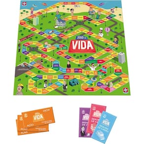 O futuro está em jogo! Negócios, carreira, casamento, filhos... O Jogo da Vida vai despertar o senso de sobrevivência dos jogadores, simulando a vida real com muita diversão. Grandes surpresas, situações difíceis ou golpes de sorte podem acontecer pelo caminho. Vem com apólices de seguro, carros de briquedo, cartões de riqueza, certificados de ações, notas promissórias e outros itens importantes. Uma disputa emocionante em busca do sucesso.