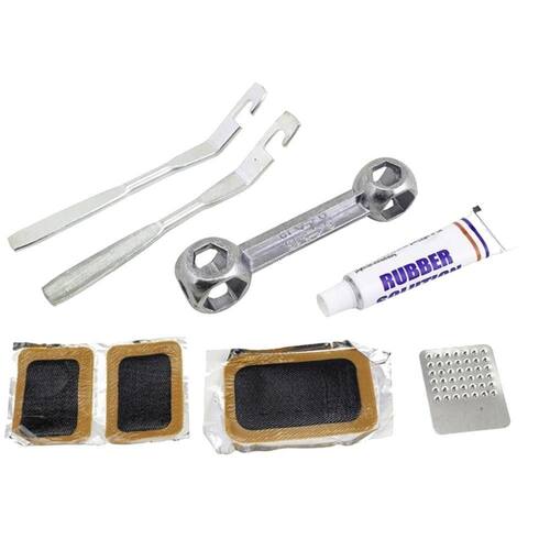 Características: - Dimensões da Embalagem: 11,5 x 2,2 x 19cm - Material: Liga de , Aço carbono, Borracha e Resina - Ferramentas: Prata - Cola: Tubo Branco - Remendos: Laranja com Preto - Tipo de Embalagem: Blister