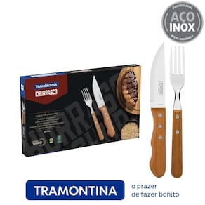 Para saborear aquele churrasco especial com a família e os amigos, conte com o jogo para churrasco Tramontina Dynamic com lâminas em aço inox e cabos de madeira natural 12 peças.