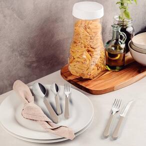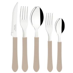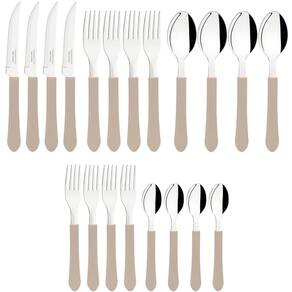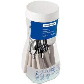Jogo de 20 Talheres no Pote Tramontina Faqueiro Leme Cinza Aço Inox Cabo Plástico Cinza.