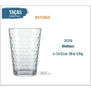Copo Batuque 265ml - Long Drink, Suco, Drink, Água, Refrigerante, Multiuso, Cerveja, Vitamina, Batida, Dia a Dia