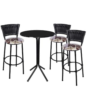 Jogo de 3 Banquetas Preta Junco Preto Assento Floral Marrom com Bistro Preto e Preto