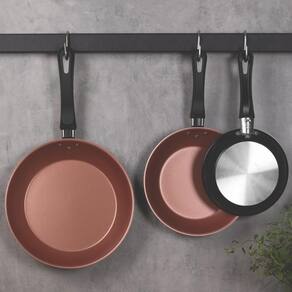 Composto por: 1 frigideira 16cm; 1 frigideira 20cm; 1 frigideira 24cm.