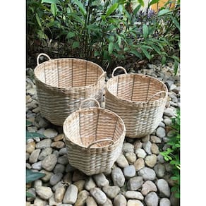 Jogo de 3 Peça - Cesta ganggu fibra natural imitando palha