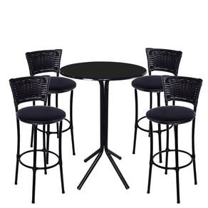 Jogo de 4 Banquetas Preta Junco Preto Assento Preto com Bistrô Preto e Preto