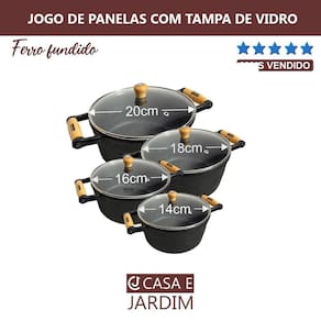Jogo De 4 Caçarolas De Ferro Panela Ferro Indução Bifeteira Todas as panelas de ferro do modelo caçarola podem ser utilizadas em todos os tipos de fogão a gás, a lenha, elétrico e também em cooktop de indução. Por que escolher nosso Conjunto de Utensílios de Cozinha de Ferro Fundido Durabilidade Imbatível: Feito de ferro fundido, este conjunto é incrivelmente durável e resistente ao desgaste, proporcionando anos de uso confiável. Excelente Retenção de Calor: O ferro fundido é conhecido por sua capacidade de reter e distribuir uniformemente o calor, resultando em pratos deliciosos e consistentes. Versatilidade na Cozinha: As peças deste conjunto são versáteis e podem ser usadas no fogão, forno e até mesmo na churrasqueira. Prepare uma ampla variedade de receitas, desde frituras até assados. Detalhes do Jogo: Panela 1 Medida da Boca: 14cm Altura: 8,0cm Litros: 1,0 litros Panela 2 Medida da Boca: 16cm Altura: 8,0cm Litros: 1,2 litros Panela 3 Medida da Boca: 18cm Altura: 9,0cm Litros: 1,6 litros Panela 4 Medida da Boca: 20cm Altura: 9,5cm Litros: 2,0 litros Material de Alta Qualidade: Todos os utensílios são feitos de ferro fundido, garantindo a durabilidade e a qualidade. 90 Dias de : Oferecemos uma de 90 dias contra defeitos de fabricação para sua tranquilidade. Na Casa E Jardim Comércio, trabalhamos com produtos de alta qualidade em ferro fundido, incluindo fornos, panelas, frigideiras, churrasqueiras e muito mais. Adquira agora o Conjunto de Panelas e Chaleira de Ferro Fundido Casa e Jardim e eleve sua culinária a um novo patamar de elegância, saúde e durabilidade. Seja você um cozinheiro doméstico apaixonado ou um profissional experiente, nossos produtos são ideais para todos os amantes da boa comida. Faça seu pedido agora e descubra a diferença que a qualidade do ferro fundido pode fazer na sua cozinha.