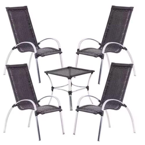 Jogo De 4 Cadeiras E Mesa Em Alumínio Garden Preto