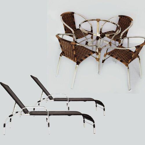 Jogo de 4 Cadeiras e Mesa Floripa em Alumínio Com 2 Espreguiçadeiras Roma - Marrom Chocolate