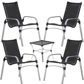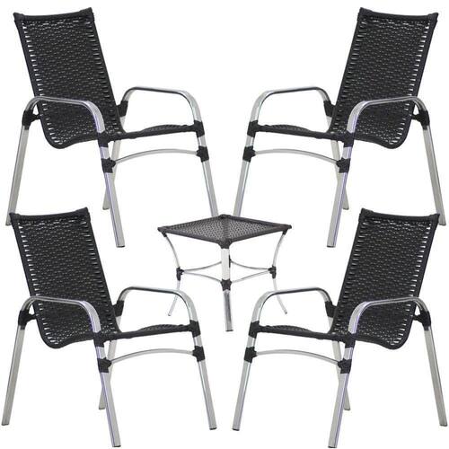 Jogo De 4 Cadeiras Emily Em Alumínio E Mesa De Centro Trama Preto