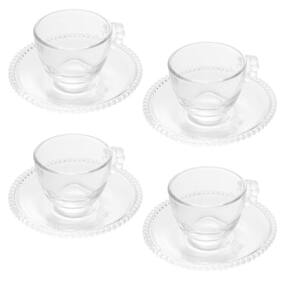 Conjunto 4 Xícaras de Café de Cristal com Pires Pearl 80ml