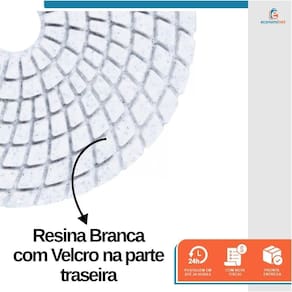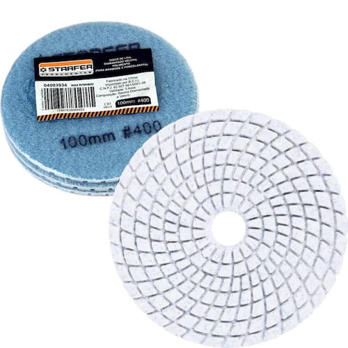 Disco de lixa diamantado para polimento, abrasivo em resina branca, com pluma na parte traseira. Indicado para lixar e polir mármore e porcelanato. Para uso em disco de borracha 100mm - starfer