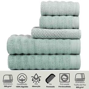 Jogo de 5 Toalhas Fio Penteado 100% Algodão Aura Verde - Atlântica