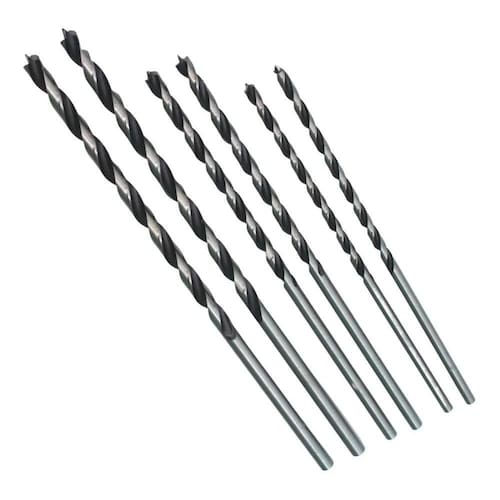 Jogo com 6 Brocas Mourão com qualidade de ponta a preço PROMOCIONAL por tempo limitado, garanta já o seu Novo lote de brocas de 3 pontas para madeira são desenvolvidas exclusivamente para furos em madeira sólida e compostos derivados. Feitas em aço carbono 45 de alta resistência com sua afiação exclusiva, garantem um melhor acabamento, alto poder de corte e grande durabilidade. 2 unidades de 6,35mm X 259mm 25cm comprimento 2 unidades de 7,93mm x 280mm 28cm comprimento 2 unidades de 9,52mm X 320mm 32cm comprimento Informações Adicionais Verifique o sentido de rotação Nunca exceda a RPM máximo e utilize as brocas somente em materiais de madeira. Excesso de rotação e avanço de corte podem comprometer a qualidade do furo e inutilizar as brocas Atenção, sempre utilize equipamento de EPI's no manuseio de equipamentos que possam oferecer algum tipo de risco a sua segurança. Para a HeMi Commerce a sua satisfação é muito importante, qualquer dúvida sobre o produto e compra estamos à disposição. do vendedor: 30 dias Marca: Não Informado Ean: 79012580384074