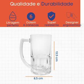 Jogo De 6 Canecas Chopp Vidro Copos Cerveja Festa 340Ml