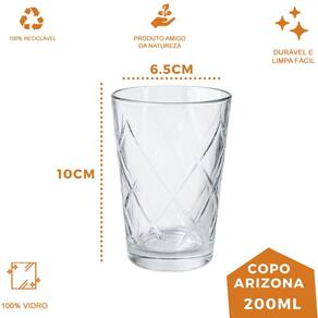 Feito de vidro de alta qualidade, o Arizona é resistente e durável, garantindo segurança e longevidade no uso. Sua capacidade de 200ml é ideal para servir bebidas como sucos, refrigerantes, água e até mesmo coquetéis, proporcionando uma experiência agradável e sofisticada.
