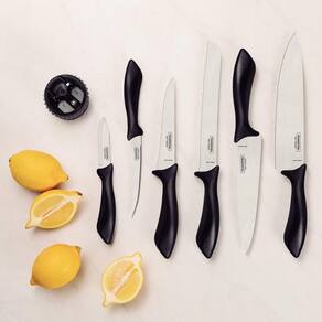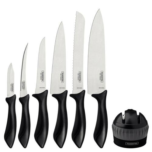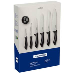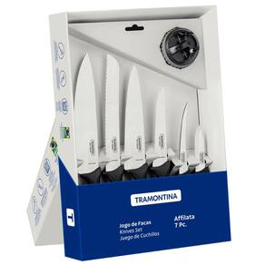 Jogo de 6 Facas e Afiador Tramontina Affilata 7 Peças Inox e Polipropileno Preto.