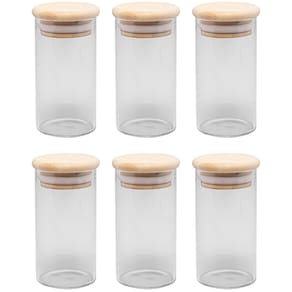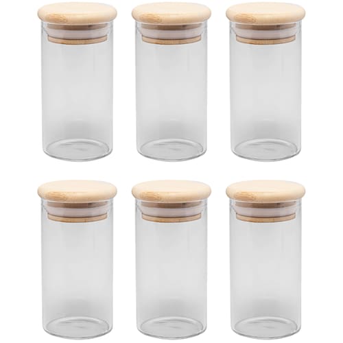 - Material: Vidro borossilicato e Bambu - Capacidade: 120ml - Dimensões da Peça: Altura: 9cm x Diâmetro: 4,5cm - Tipo de embalagem: Avulso sem caixa - Quantidade: 6 unidades