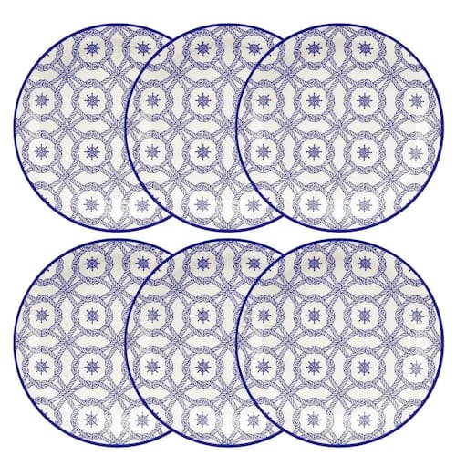 Tipo Raso Uso Resistente a micro-ondas, Resistente a lava-louças Cor Azul Material Cerâmica Conteúdo da embalagem 6 pratos rasos com 26 cm de diâmetro Linha/Decoração Floreal Náutico Conjunto ou avulso Conjunto Tipo da embalagem Papelão pardo Formato Redondo Decoração Estampado