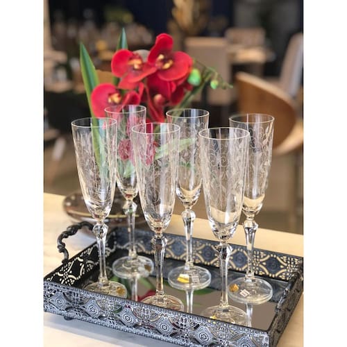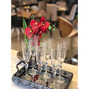 Jogo de Taças Champagne Elizabeth Decorada 6 Peças 200ml Se você busca elevar seus momentos especiais com uma pitada de sofisticação, o Jogo de Taças Champagne Elizabeth Decorada 6 Peças 200ml é a escolha ideal. Com sua beleza única e qualidade incomparável, este conjunto de taças é projetado para transformar seus momentos entre familiares e amigos em ocasiões verdadeiramente memoráveis. Cada uma delicadamente decorada para adicionar um toque de requinte à sua experiência. Fabricadas em cristal ecológico de alta qualidade, essas taças oferecem não apenas uma grande estética elegante, mas também uma boa durabilidade que as torna ideais para celebrações recorrentes. Contém:6 taças Imagens Ilustrativa